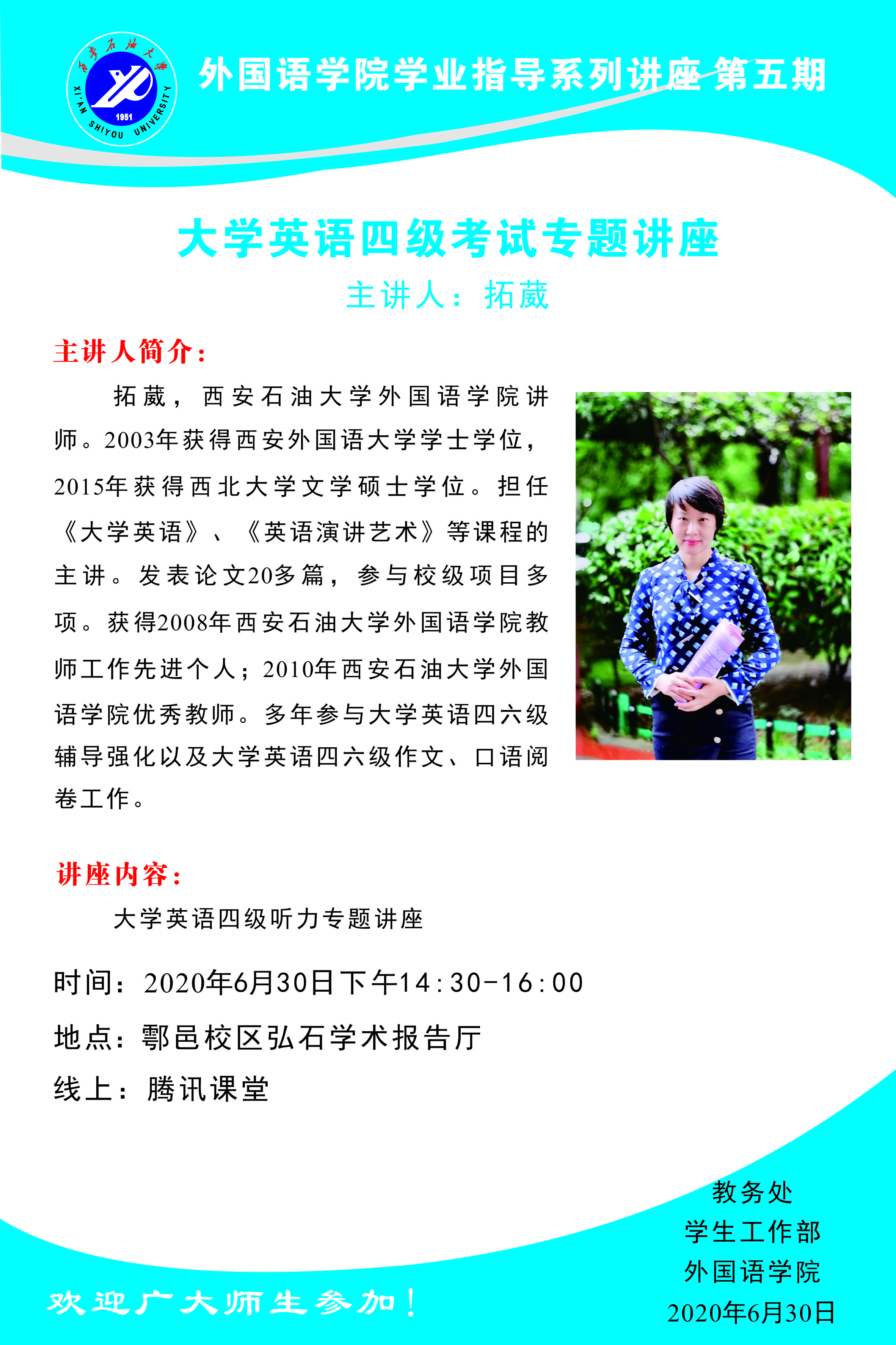 2. 大學(xué)英語(yǔ)四級(jí)聽力專題講座 主講人:拓葳老師