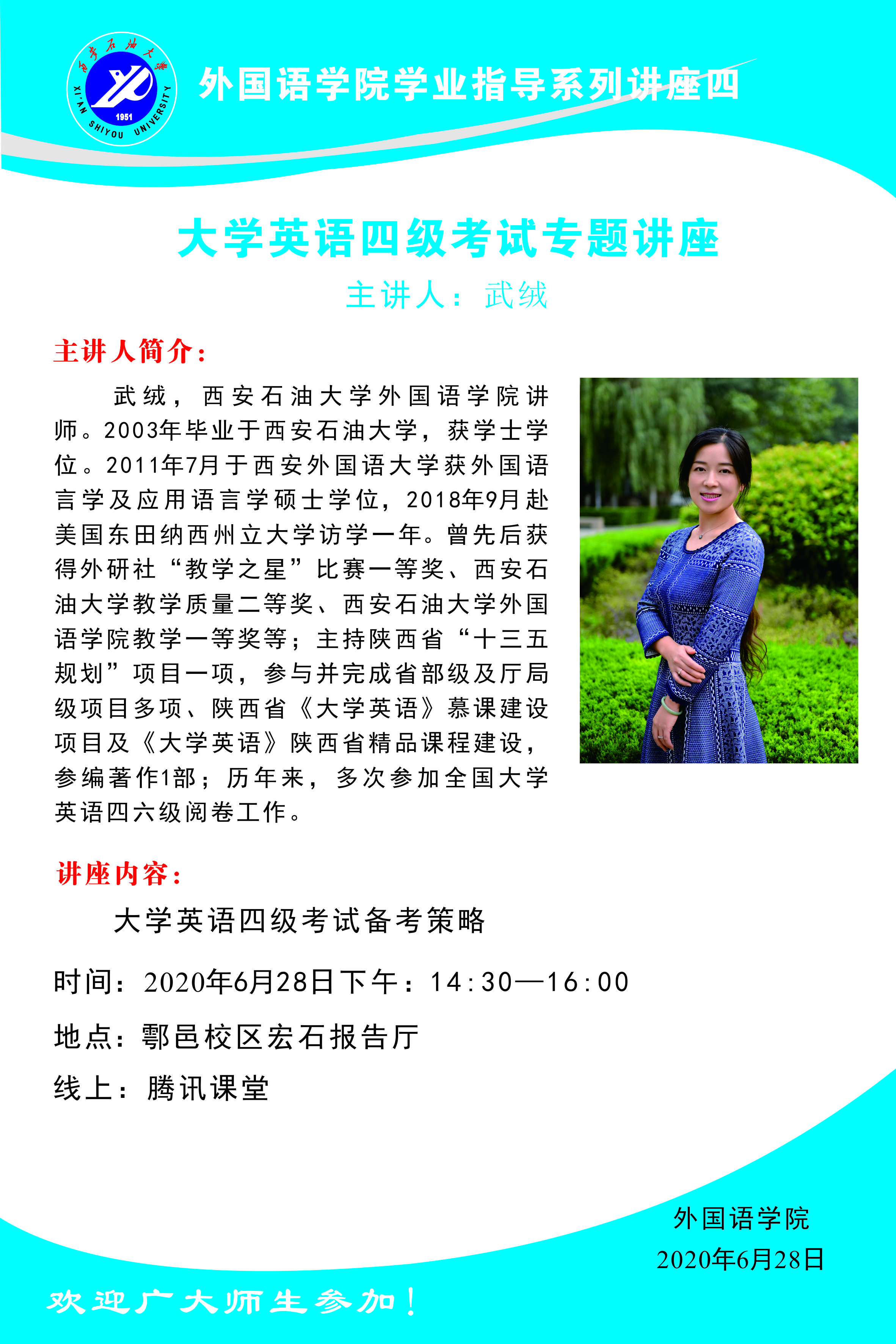 關(guān)于公布外國(guó)語(yǔ)學(xué)院大學(xué)英語(yǔ)四級(jí)系列講座回放鏈接的通知