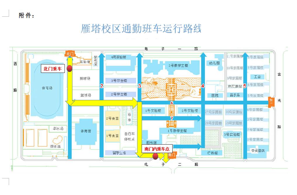 附:雁塔校區(qū)通勤班車運行路線圖