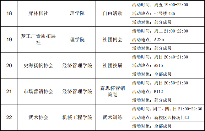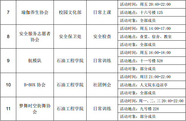 西安石油大學(xué)2016—2017學(xué)年第二學(xué)期第十三周社團(tuán)活動一覽表
