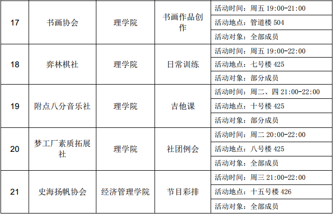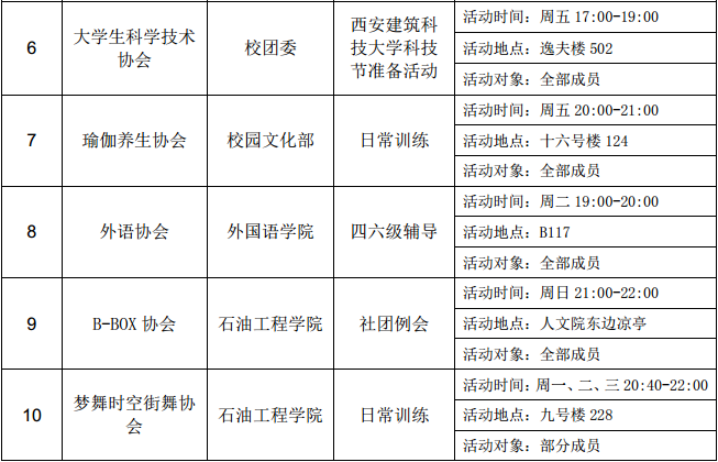 西安石油大學(xué)2016—2017學(xué)年第二學(xué)期第八周社團(tuán)活動(dòng)一覽表