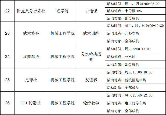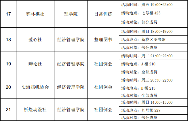 西安石油大學(xué)2016—2017學(xué)年第二學(xué)期第四周社團(tuán)活動(dòng)一覽表