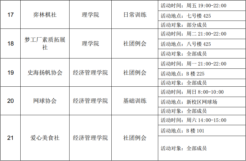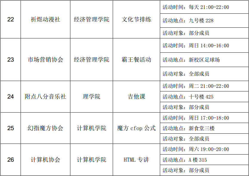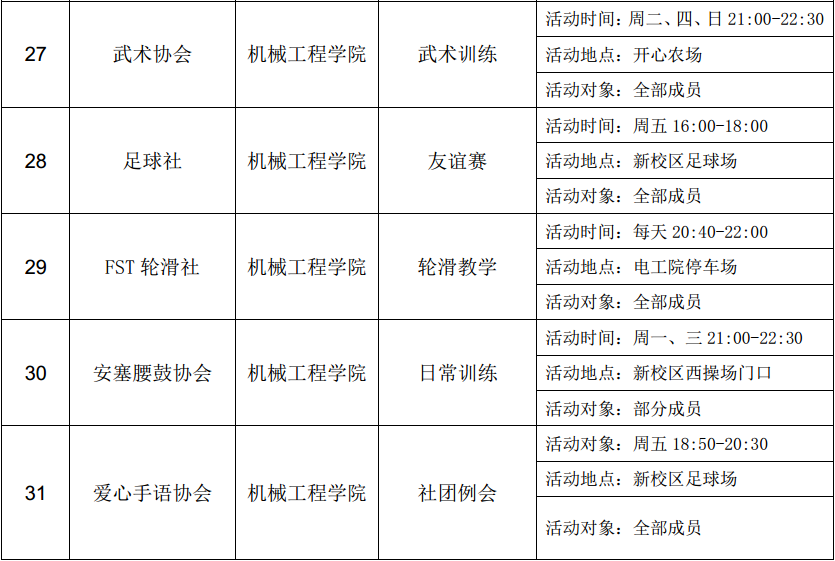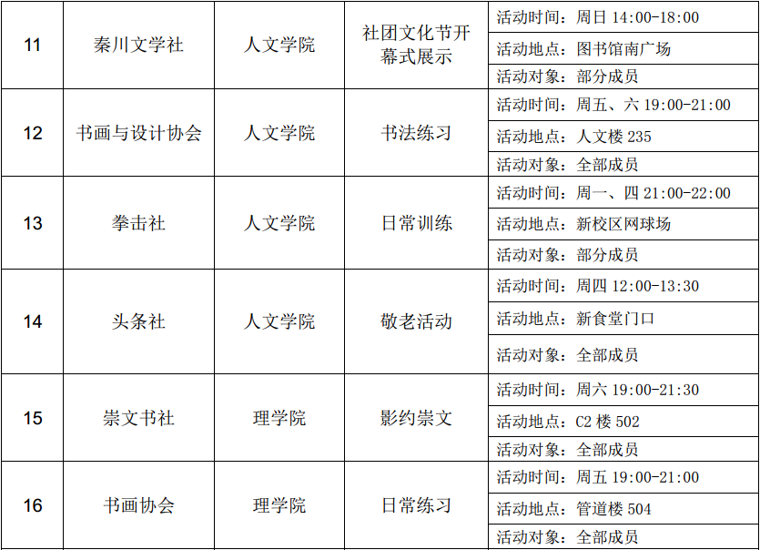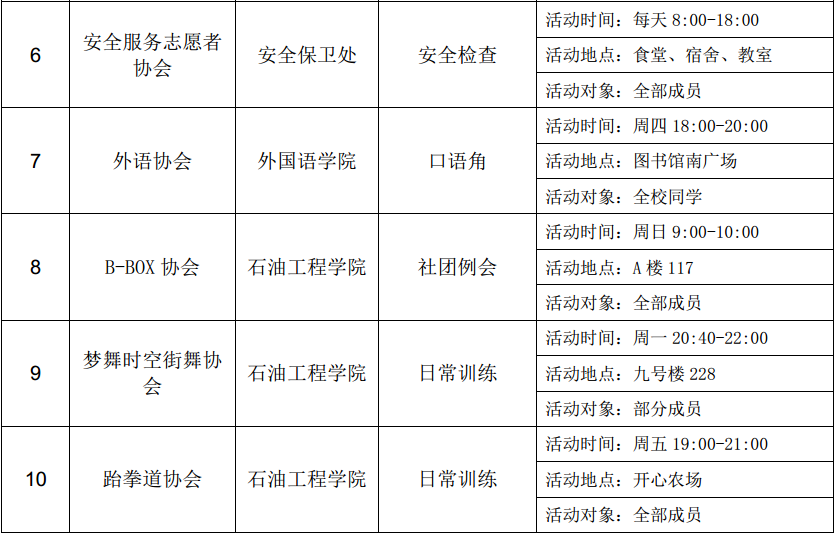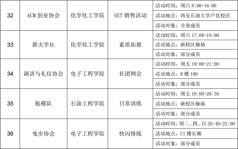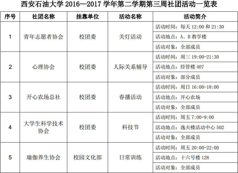 西安石油大學(xué)2016—2017學(xué)年第二學(xué)期第三周社團(tuán)活動(dòng)一覽表