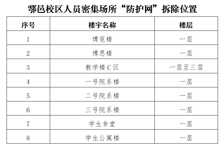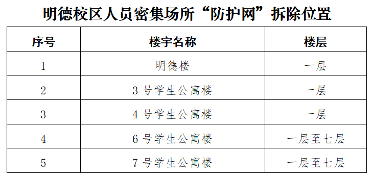 關(guān)于拆除雁塔、明德及鄠邑三校區(qū)人員密集場(chǎng)所“防護(hù)網(wǎng)”的通知