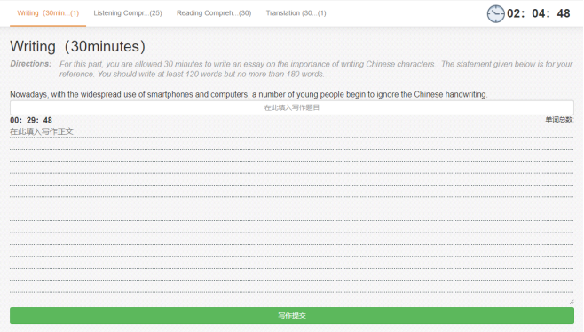 2、確保找一個(gè)時(shí)間段充足的時(shí)間答題,中途不能退出,需一氣呵成,一旦開(kāi)始答題就必須直到提交才算??冀Y(jié)束。