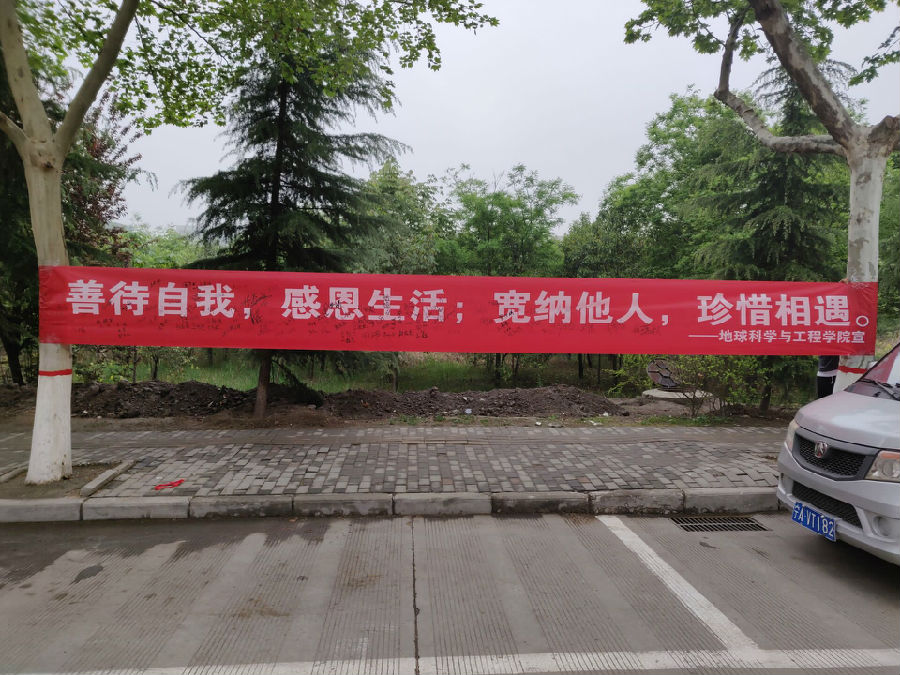 為進(jìn)一步普及大學(xué)生心理健康知識,構(gòu)建健康和諧的校園環(huán)境。4月10日早上,地球科學(xué)與工程學(xué)院在鄠邑校區(qū)東方廣場舉辦“善待自我,感恩生活;寬納他人,珍惜相遇”主題簽名活動(dòng)。