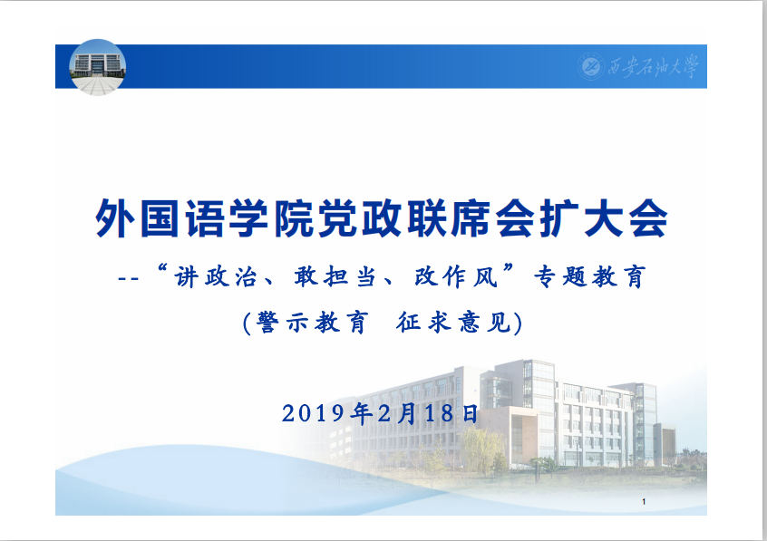 外國語學(xué)院召開“講政治、敢擔(dān)當(dāng)、改作風(fēng)”專題教育學(xué)習(xí)會(huì)暨征求意見座談會(huì)