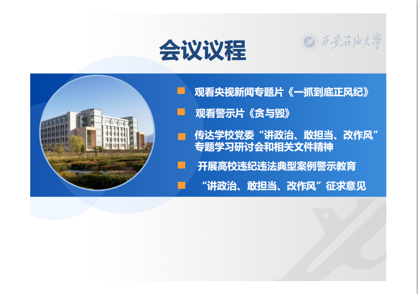 首先,蔡強(qiáng)書記詳細(xì)傳達(dá)了學(xué)校黨委于1月25日和2月13日召開的黨委理論學(xué)習(xí)中心組學(xué)習(xí)擴(kuò)大會(huì)的會(huì)議精神和工作要求,認(rèn)真學(xué)習(xí)了學(xué)校黨委組織部《關(guān)于持續(xù)推進(jìn)“講政治、敢擔(dān)當(dāng)、改作風(fēng)”專題教育的通知》,再次學(xué)習(xí)《關(guān)于集中開展違規(guī)收送禮金問題專項(xiàng)整治的通知》和《關(guān)于明確違規(guī)收送禮金專項(xiàng)整治工作有關(guān)問題的通知》,開展了黨的十八大以來陜西省高校系統(tǒng)違紀(jì)違法典型案例警示教育。