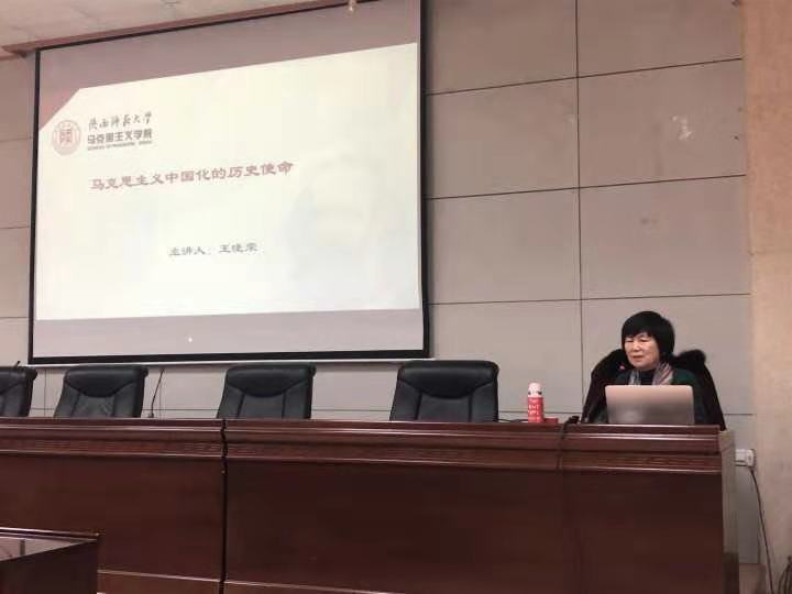 12月10日下午,由馬克思主義學院舉辦的“思政大講堂”系列學術(shù)報告會在雁塔校區(qū)會議中心第三會議室舉行,陜西師范大學馬克思主義學院王曉榮教授應邀為我院師生作了以“馬克思主義中國化的歷史使命”為主題的報告。報告會由我院副院長張海濤主持,我院黨總支書記李淵及廣大師生參加了報告會。