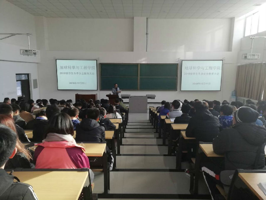12月11日下午16:00,地球科學與工程學院在鄠邑校區(qū)石工地科樓115教室召開2018級冬季安全教育大會。輔導員李化杰主持了本次會議, 學院2018級全體同學參加了大會。
