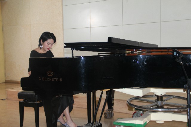 鋼琴器樂(lè)專場(chǎng)曲目豐富,有彰顯技巧的《帕格尼尼練習(xí)曲》,有音色優(yōu)美的德彪西鋼琴作品,還有古箏獨(dú)奏《楓橋夜泊》、小提琴、薩克斯獨(dú)奏等節(jié)目。