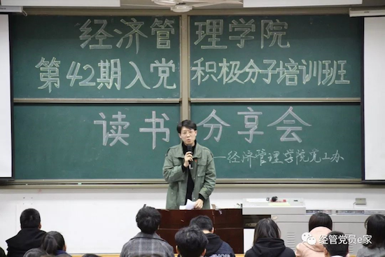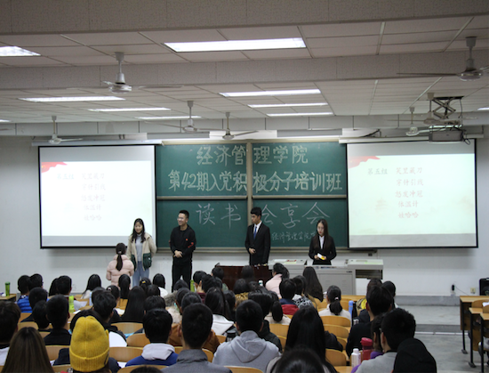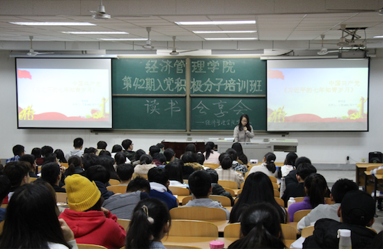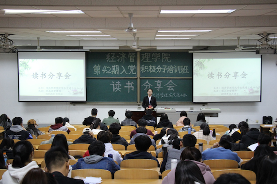 為深入學(xué)習(xí)黨的十九大精神,學(xué)好黨的知識(shí),提高黨性修養(yǎng),同時(shí)豐富課余生活,陶冶情操,擴(kuò)展知識(shí)面,增加文化素養(yǎng),提高個(gè)人修養(yǎng),11月28-29日晚,由經(jīng)濟(jì)管理學(xué)院黨委主辦,學(xué)生黨建工作辦公室承辦的“書香校園建設(shè)”系列活動(dòng)之“讀書分享會(huì)”于鄠邑校區(qū)教學(xué)A區(qū)139教室順利舉行,黨工辦學(xué)生干部、入黨積極分子200余人參加。