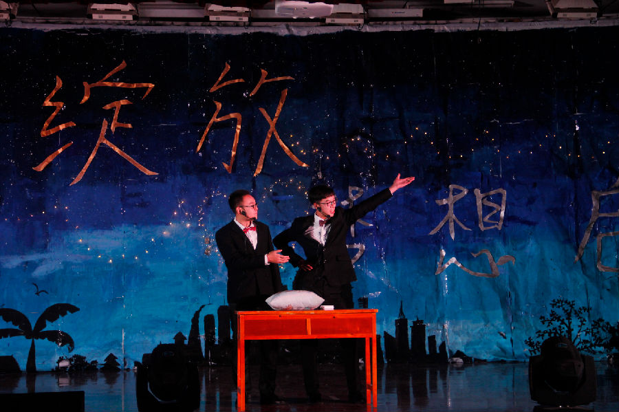 晚會(huì)在《重返十七歲》的歌聲中正式開始,精彩紛呈的節(jié)目贏得了同學(xué)們的一陣陣掌聲。歌舞《落花情》表現(xiàn)了同學(xué)們對傳統(tǒng)文化的熱情;《吉他彈唱》、《This is why we sing》、《BOOM》、《目不轉(zhuǎn)睛的看星球墜落》彰顯了同學(xué)們的青春與活力;小品《大話西游》、《盤絲洞》是同學(xué)們對經(jīng)典影視的再創(chuàng)造;值得一提的是由2018級(jí)輔導(dǎo)員錢宇航參與的手語舞《明天,你好》,鼓勵(lì)同學(xué)們對未來生活要充滿希望和向往,享受美好的大學(xué)生活。最后,晚會(huì)在學(xué)生會(huì)主要成員表演的《最美的太陽》歌聲中落幕。