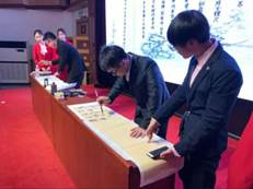 比賽現(xiàn)場,研究生社團(tuán)“星原詩社”及“翰墨書社”也帶了精彩節(jié)目進(jìn)行分享。星原詩社副社長康凱等演繹了詩朗誦“厲害了我的國”,激昂振奮;翰墨書社李睿哲等現(xiàn)場揮毫潑墨,伴著朗誦,一幅幅書法作品讓我們領(lǐng)略了“聽風(fēng)落筆書畫卷,聞歌踏行彩墨宜,潤澤拂柳漾碧波,書會(huì)揮毫展藝活”的精妙。