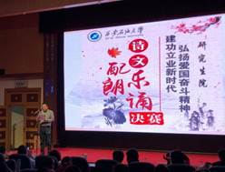 此次朗誦比賽由研究生院黨委主辦,研究生院團(tuán)委、研究生會(huì)協(xié)辦,以弘揚(yáng)愛國奮斗精神、弘揚(yáng)社會(huì)主義核心價(jià)值觀、謳歌改革開放四十年偉大成就為主題,是貫徹落實(shí)學(xué)校黨委“弘揚(yáng)愛國奮斗精神 建功立業(yè)新時(shí)代”的系列活動(dòng)之一,為進(jìn)一步增強(qiáng)研究生愛國熱情,激發(fā)研究生刻苦學(xué)習(xí)、投身建設(shè)的愛國情懷,為研究生院進(jìn)一步加強(qiáng)書香校園建設(shè)工作、進(jìn)一步緊密圍繞學(xué)校中心工作、助力學(xué)校事業(yè)發(fā)展奠定良好基礎(chǔ)。