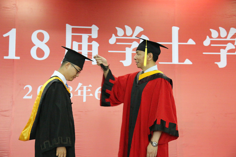 2018屆畢業(yè)生代表孫孔明同學(xué)代表學(xué)院全體畢業(yè)生,衷心感謝母校給予他們的精心培養(yǎng),表示難以忘記四年來老師們的諄諄教誨與同學(xué)們的深厚情誼。他代表全體畢業(yè)生承諾在未來前進的道路上,他們將秉承對母校的熱愛與感激,肩負起新時代大學(xué)生的使命,彰顯西石大畢業(yè)生的風(fēng)采。隨后在莊重的音樂聲中,周德勝院長為每位畢業(yè)生頒發(fā)學(xué)位證書、一一撥正流蘇并合影留念。
