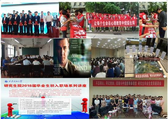 ——促進(jìn)工作,堅(jiān)持融合。在開(kāi)展專(zhuān)題學(xué)習(xí)和落實(shí)三會(huì)一課制度中,研究生院黨委堅(jiān)持以促進(jìn)工作,學(xué)做融合為原則,要求研究生黨建工作為研究生學(xué)術(shù)實(shí)踐和穩(wěn)定安全教育提供思想保證和動(dòng)力支持。2018年5月至今,在各研究生黨支部積極帶動(dòng),研究生黨員模范帶頭下,研究生院超額完成互聯(lián)網(wǎng)+創(chuàng)新創(chuàng)業(yè)大賽報(bào)名工作,研究生在石油裝備創(chuàng)新設(shè)計(jì)大賽、研究生電子設(shè)計(jì)競(jìng)賽、陜西省研究生創(chuàng)新成果展報(bào)名積極,并石油工程設(shè)計(jì)大賽等學(xué)科競(jìng)賽中獲得全國(guó)二等獎(jiǎng)2項(xiàng)、三等獎(jiǎng)3項(xiàng)。在穩(wěn)定安全教育中,充分發(fā)揮黨支部戰(zhàn)斗堡壘作用和研究生黨團(tuán)骨干作用,結(jié)合研究生在學(xué)習(xí)生活中關(guān)注的熱點(diǎn)難點(diǎn),開(kāi)展研究生宿舍管理服務(wù)專(zhuān)題座談會(huì);結(jié)合“525心理健康教育月”,開(kāi)展宣傳倡議、印發(fā)手冊(cè)、現(xiàn)場(chǎng)咨詢(xún)、科普展覽、電影評(píng)析、問(wèn)卷調(diào)查、主題講座等系列活動(dòng);結(jié)合畢業(yè)生文明離校,開(kāi)展畢業(yè)生初入職場(chǎng)系列講座、畢業(yè)籃球賽、畢業(yè)生黨員座談會(huì)、主題征文等,進(jìn)一步強(qiáng)化黨員身份意識(shí),宗旨意識(shí),切實(shí)增強(qiáng)黨員榮譽(yù)感,責(zé)任感,使命感,為進(jìn)一步加強(qiáng)研究生思想政治教育和積極推進(jìn)研究生黨建工作做出自身更大的貢獻(xiàn)。