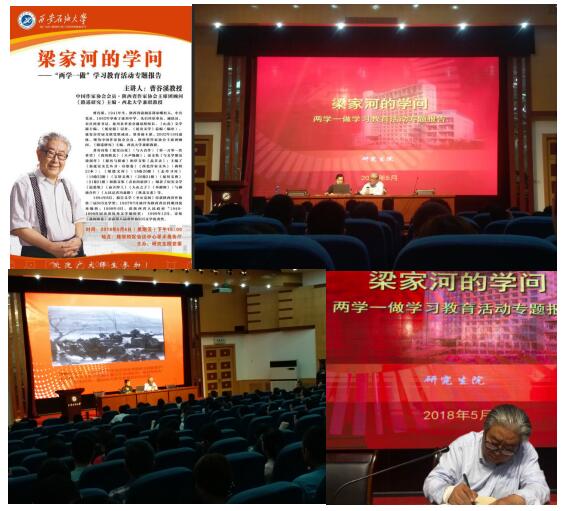 ——舉辦報(bào)告。5月4日下午,研究生院黨委邀請(qǐng)省作協(xié)主席團(tuán)顧問(wèn)曹谷溪先生在雁塔校區(qū)為研究生院師生作了題為《梁家河的學(xué)問(wèn)》的專(zhuān)題報(bào)告。研究生院黨委領(lǐng)導(dǎo)、全體學(xué)工干部和研究生代表300余人聆聽(tīng)了報(bào)告。報(bào)告會(huì)上,曹老通過(guò)回顧習(xí)近平總書(shū)記在陜北黃土高原、在梁家河大隊(duì)創(chuàng)辦沼氣的知青歲月,闡述了習(xí)近平總書(shū)記青年時(shí)代矢志不渝的理想追求、愛(ài)國(guó)為民的家國(guó)情懷、勤奮好學(xué)的進(jìn)取精神、求真務(wù)實(shí)的良好作風(fēng)和吃苦耐勞的優(yōu)秀品質(zhì)。本次報(bào)告會(huì)旨在讓研究生牢記習(xí)近平總書(shū)記在北京大學(xué)師生座談會(huì)上愛(ài)國(guó)、勵(lì)志、求真、力行的諄諄囑托,反響熱烈。