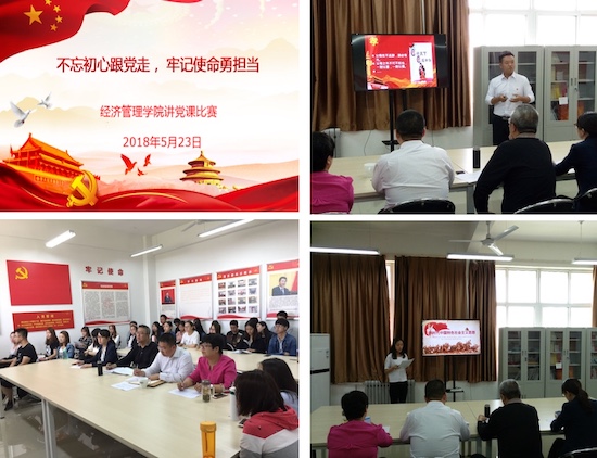 ——馬克思主義進支部。5月23日中午,經(jīng)濟管理學院“不忘初心跟黨走,牢記使命勇?lián)敗敝v黨課比賽在鄠邑校區(qū)經(jīng)管人文樓307黨員活動室舉辦。本次比賽緊緊圍繞學懂弄通做實黨的十九大精神和深刻領會習近平新時代中國特色社會主義思想這一主題開展。經(jīng)過激烈比拼,會計系教工黨支部書記王小鵬同志和2015級非商管學生黨支部組織委員魯運海同志脫穎而出,將代表教工黨員和學生黨員參加全校比賽。