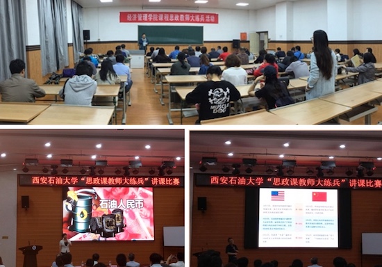 ——馬克思主義進課堂。5月9日,經(jīng)濟管理學院組織進行了“課程思政教師大練兵教學觀摩活動”,既為學生教授了豐富的專業(yè)知識,又潛移默化地傳播了正確的價值觀、世界觀,豐富了課堂。石冬蓮老師以主講課程《國際金融》中“國際貨幣體系”部分為對象進行了講述。她結合國際、國內(nèi)時政要點,對“石油美元”歷史、現(xiàn)狀及預期等熱點問題進行了精彩紛呈的講解。董春詩老師以主講課程《宏觀經(jīng)濟學》中“國民收入核算體系—GDP”部分為對象進行了講述。董老師把一組組詳實的數(shù)據(jù)和我國的經(jīng)濟發(fā)展歷程結合起來,使學生從數(shù)據(jù)中清晰地看到新時代的到來、新時代的特色和新時代的要求,董老師的講述使數(shù)據(jù)變得鮮活,課堂充滿了激情。兩位老師代表經(jīng)濟管理學院參加了6月5日在鄠邑校區(qū)經(jīng)管人文樓118室舉辦的校級“思政課教師大練兵”講課比賽,包攬前兩名,并取得了參加省賽的資格。