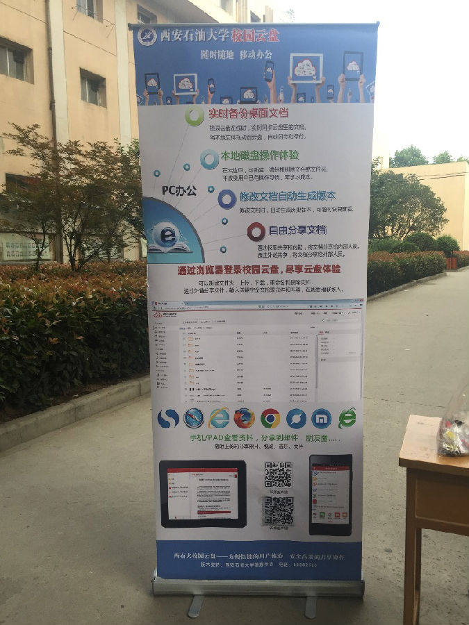 5月17日,為進(jìn)一步提高西安石油大學(xué)校園云盤(pán)(簡(jiǎn)稱(chēng):西石大云盤(pán))的登錄使用率,信息中心分別在鄠邑校區(qū)和雁塔校區(qū)舉辦了西石大云盤(pán)宣傳推廣活動(dòng)。西石大云盤(pán)是我校部署的私有云存儲(chǔ)系統(tǒng),具有個(gè)人網(wǎng)盤(pán)、課件共享、作業(yè)提交、團(tuán)隊(duì)協(xié)作等多種便捷功能,為我校師生提供了一個(gè)安全高效的教學(xué)科研數(shù)據(jù)與學(xué)習(xí)資料共享的存儲(chǔ)服務(wù)。
