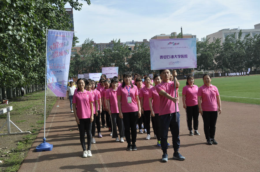 5月11日上午,為慶祝第107個(gè)國際護(hù)士節(jié),校醫(yī)院院職工在崔廣志院長的帶領(lǐng)下參加西安雁塔區(qū)衛(wèi)生與計(jì)劃生育局舉辦的慶?!?.12”護(hù)士節(jié)運(yùn)動(dòng)會(huì)。