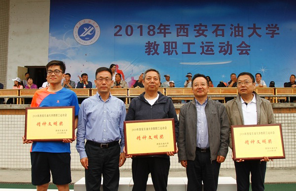 地球科學(xué)與工程學(xué)院教職工代表隊在本屆運動會中共參加集體項目5項、個人項目26項。學(xué)院教職工奮勇拼搏,先后在乒乓球擲準、20人集體挽臂跑、30米迎面接力三項集體項目和男子甲組3000m、男子甲組1500m、男子跳遠三項個人項目中取得較好成績,獲得團體總分第六名,并榮獲“2018年西安石油大學(xué)教職工運動會精神文明獎”。