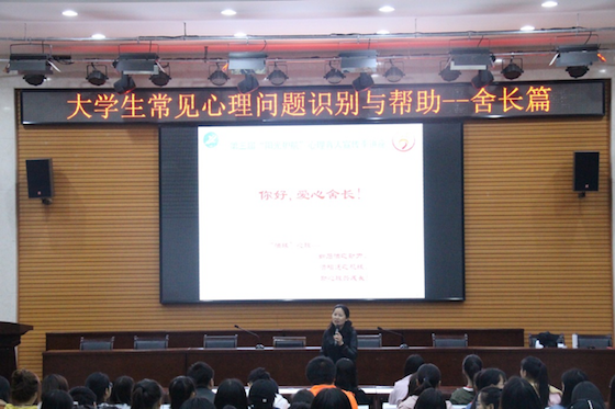 為落實我校第三屆“陽光護航”心理育人宣傳季活動計劃,提升經濟管理學院“陽光護航”心理育人月系列活動水平,2018年4月12日晚,經濟管理學院邀請我校學生心理成長指導中心主任肖瓊副教授在經管人文樓118室舉辦《大學生心理問題識別與幫助——舍長篇》專題講座。經管院各年級輔導員和2015、2016級宿舍長300余人參加此次活動。