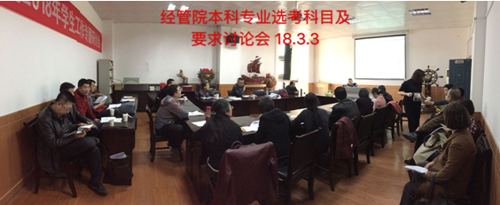 2018年3月3日,應我校本科專業(yè)(類)選考科目工作通知的要求,經(jīng)管院召開“本科專業(yè)(類)選考科目討論會”。參會人員有教授委員會成員、學院班子成員、各專業(yè)帶頭人、各專業(yè)負責人、綜合辦、教學辦人員。