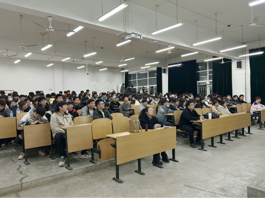 活動(dòng)伊始,魚(yú)濤發(fā)表致辭。他講到,本次大會(huì)以“學(xué)業(yè)規(guī)劃,筑夢(mèng)保研”為主題,旨在幫助學(xué)生明確學(xué)業(yè)目標(biāo),規(guī)劃未來(lái)發(fā)展路徑,同時(shí)為即將到來(lái)的大學(xué)生競(jìng)賽進(jìn)行動(dòng)員。學(xué)業(yè)規(guī)劃是大學(xué)生成長(zhǎng)成才的關(guān)鍵環(huán)節(jié),尤其是在環(huán)境工程領(lǐng)域,同學(xué)們需要結(jié)合國(guó)家“雙碳”戰(zhàn)略和綠色發(fā)展需求,明確自身發(fā)展方向。他鼓勵(lì)同學(xué)們盡早制定學(xué)業(yè)目標(biāo),積極參與科研實(shí)踐和學(xué)科競(jìng)賽,為未來(lái)的深造和就業(yè)打下堅(jiān)實(shí)基礎(chǔ)。