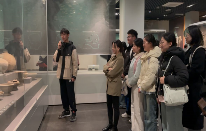 西安博物院是一座集文物收藏、科學(xué)研究、社會教育、園林休閑為一體的綜合性博物館。博物館內(nèi)藏品豐富,涵蓋了從遠古時期到近現(xiàn)代的歷史文物,是了解西安乃至陜西歷史文化的重要窗口?;顒赢?dāng)天,“英銳實踐團”成員在博物館工作人員的帶領(lǐng)下,對漢代玉杯、金背瑞獸葡萄鏡、秦代玉高足杯等文物進行英文講解,了解了西安作為十三朝古都的輝煌歷史和文化底蘊。此次活動旨在通過參觀博物院,提升學(xué)生的英語表達能力,加深對中華優(yōu)秀傳統(tǒng)文化的理解與傳承,同時助力中華文化的國際傳播。