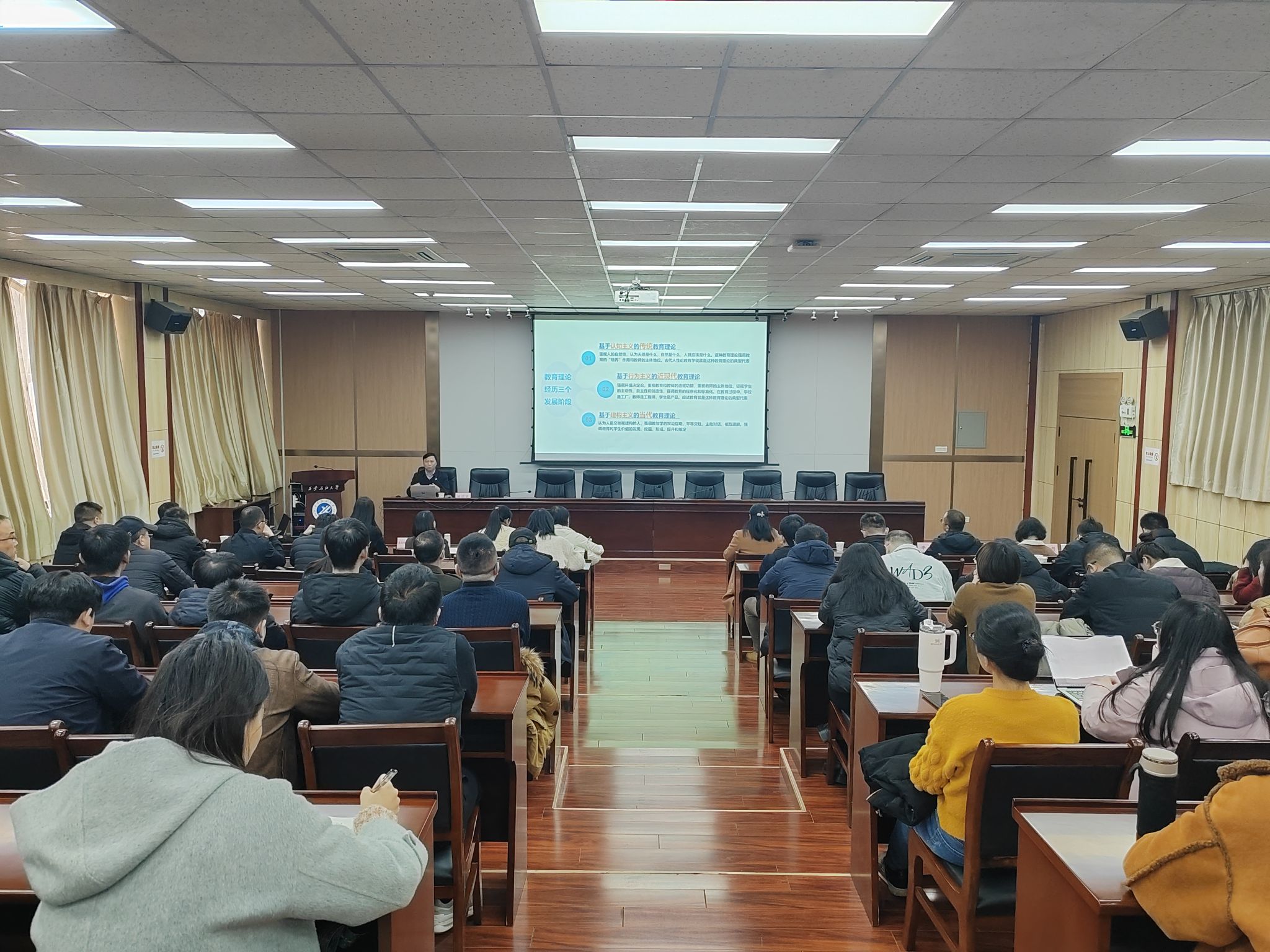 3月6日下午,西北地區(qū)高等學(xué)校教師教學(xué)發(fā)展中心聯(lián)盟“名師西部高校行”活動在我校雁塔校區(qū)會議中心第五會議室舉行,西北教師發(fā)展聯(lián)盟執(zhí)行秘書長吉康敏、西安交通大學(xué)教師發(fā)展中心崔海盟兩位老師出席。本次活動特邀國家教學(xué)名師、西北大學(xué)賴紹聰教授,西安交通大學(xué)能動學(xué)院李平教授做專題報(bào)告和示范課。西安航空學(xué)院、西安翻譯學(xué)院、西安交通大學(xué)城市學(xué)院、陜西科技大學(xué)鎬京學(xué)院及我校120余名教師參加活動。活動由黨委教師工作部部長武曉朦主持。