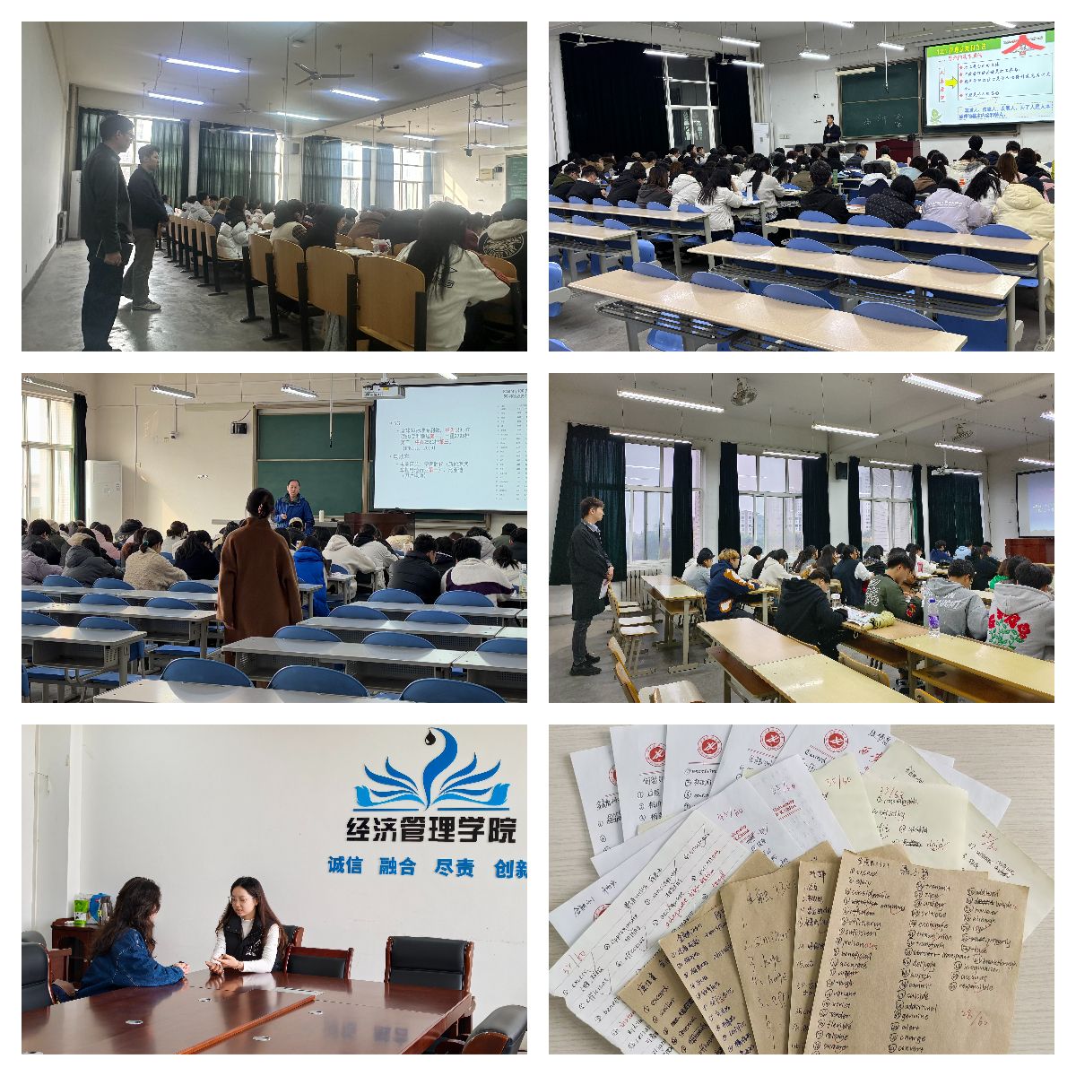 三是深入課堂強(qiáng)根基,學(xué)風(fēng)建設(shè)再深化。學(xué)院領(lǐng)導(dǎo)班子開展開學(xué)第一周教學(xué)檢查,深入課堂一線,重點(diǎn)檢查教師備課、教學(xué)秩序、課堂互動(dòng)等情況,聽取師生對(duì)課程設(shè)置、教學(xué)方法等方面的建議。各年級(jí)輔導(dǎo)員將深入課堂作為常態(tài)化工作,通過與學(xué)生共聽一節(jié)課、與任課教師交流了解學(xué)生課堂情況,關(guān)注學(xué)生狀態(tài)。多措并舉推動(dòng)學(xué)風(fēng)建設(shè),組織開展英語(yǔ)四級(jí)單詞聽寫、學(xué)業(yè)預(yù)警學(xué)生談話、考風(fēng)考紀(jì)誠(chéng)信教育、職業(yè)生涯規(guī)劃講座等活動(dòng),增強(qiáng)學(xué)生學(xué)習(xí)主動(dòng)性、積極性,引導(dǎo)學(xué)生以飽滿狀態(tài)迎接新學(xué)期。