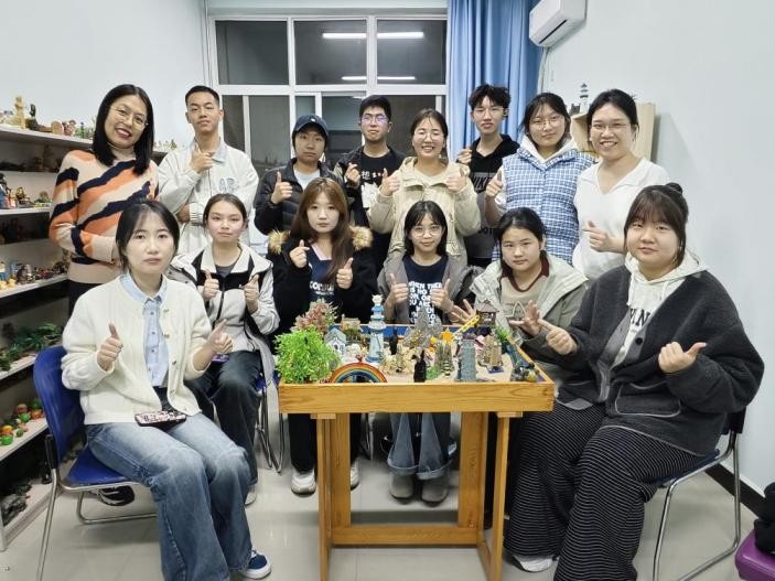 工作研討后,團(tuán)隊(duì)成員齊聚崇文樓 447(沙盤(pán)創(chuàng)作室),在老師的帶領(lǐng)下,進(jìn)行了團(tuán)體沙盤(pán)活動(dòng)。成員們積極參與創(chuàng)作和體驗(yàn),在活動(dòng)中加深了理解,增進(jìn)了溝通,團(tuán)隊(duì)更加向心凝聚。