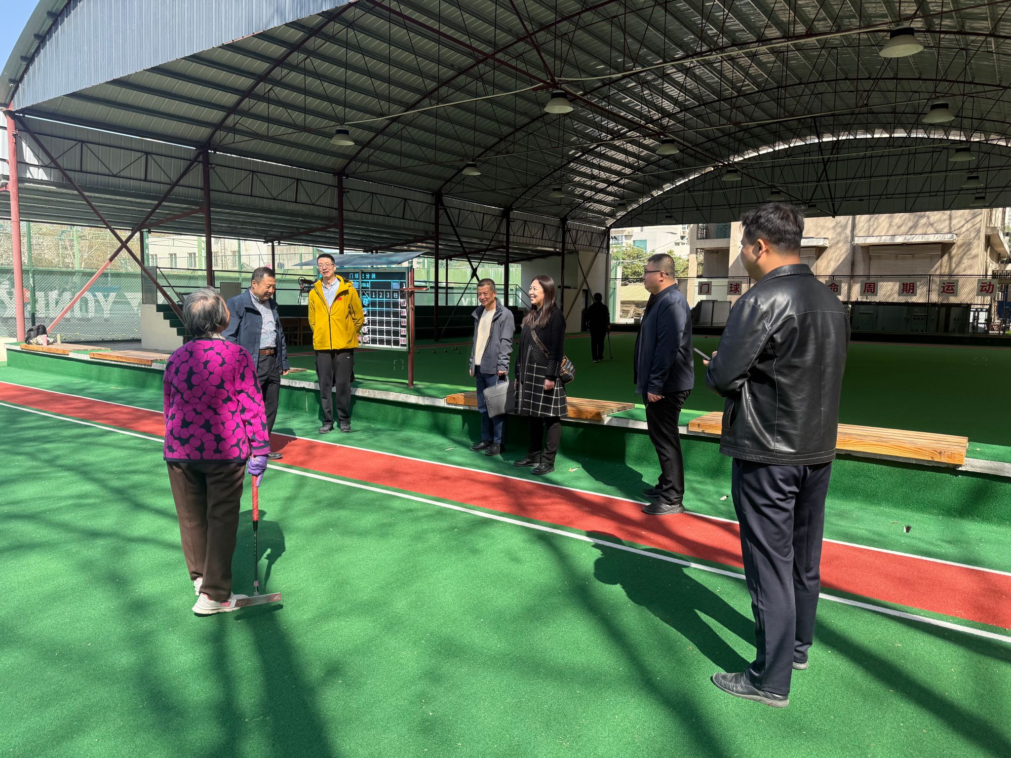 會后,在我校工作人員的陪同下,朱艦處長一行參觀了我校的老年活動室、閱覽室、乒乓球室以及門球場等老年活動場地。完善的設施、貼心的布局,給來賓們留下了深刻印象。