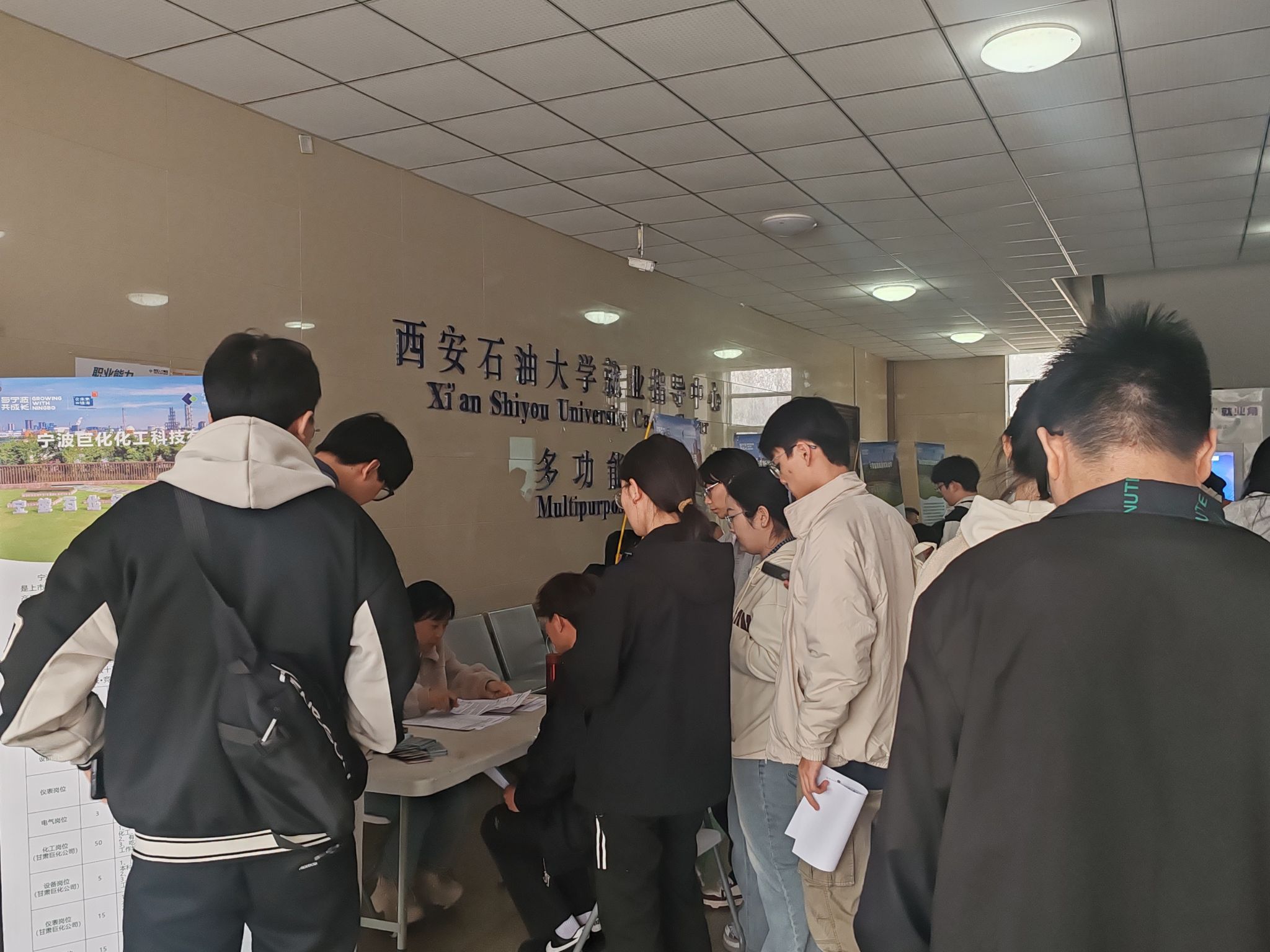 3月27日,我校在鄠邑校區(qū)崇文樓118報(bào)告廳舉辦“奔甬而來@未來IN鎮(zhèn)?!薄G色石化產(chǎn)業(yè)鏈重點(diǎn)企業(yè)2025屆春季校園專場招聘會。包括中石化鎮(zhèn)海煉化、寧波巨化化工、寧波博匯化工等10余家行業(yè)龍頭企業(yè)參會。我?;瘜W(xué)化工學(xué)院、機(jī)械工程學(xué)院、電子工程學(xué)院、計(jì)算機(jī)學(xué)院等390余名畢業(yè)生參加招聘。