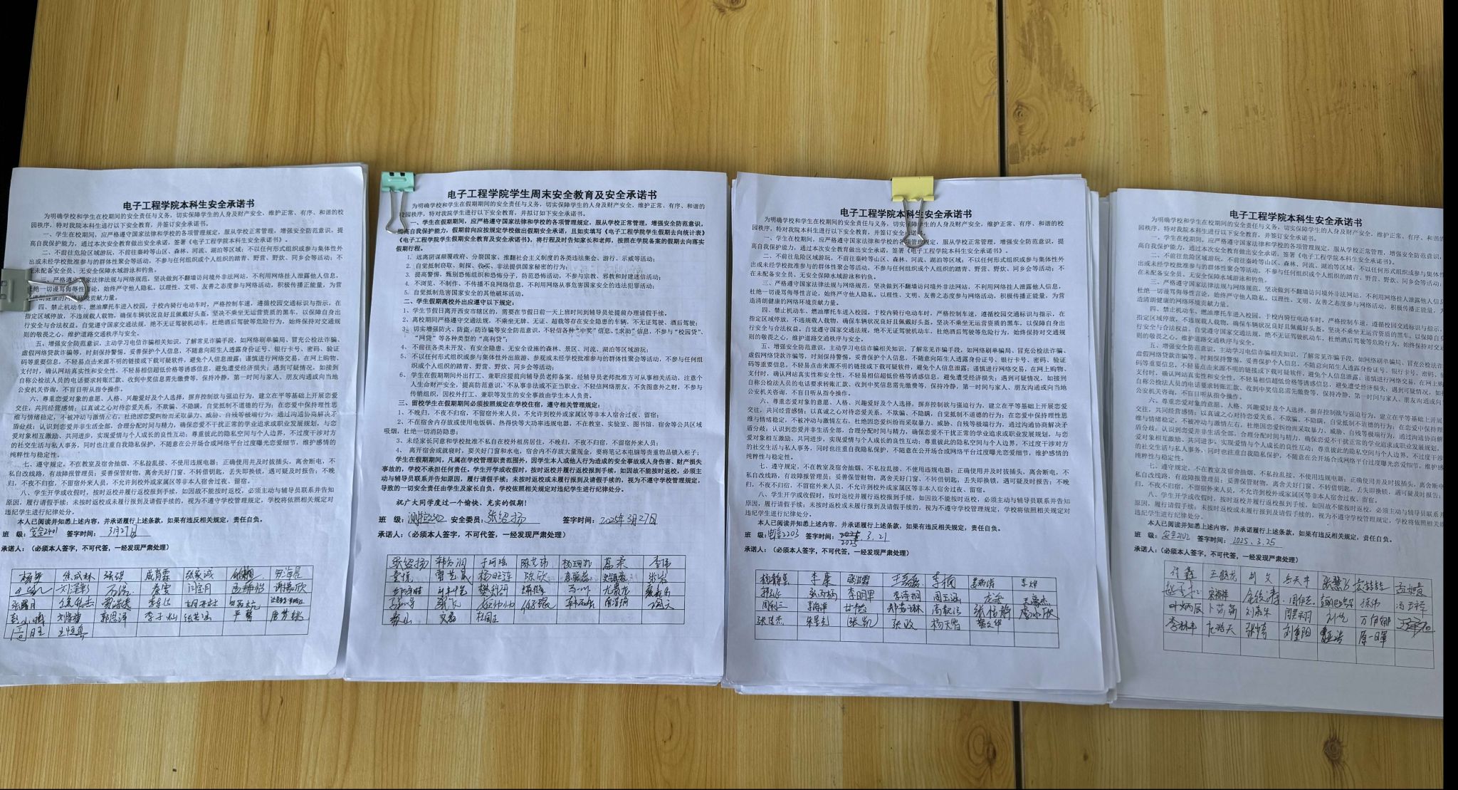 此次安全教育有利于進一步提高學生假期安全防范意識,強化學生行為規(guī)范與紀律意識,增強學生自我保護能力。學院將持續(xù)關(guān)注同學們思想動態(tài),多途徑加強學生安全教育,注重提升學生多方面安全意識與素養(yǎng),營造安全穩(wěn)定的校園環(huán)境。會后,各年級輔導員老師組織學生閱讀并簽署了電子工程學院本科生安全承諾書。