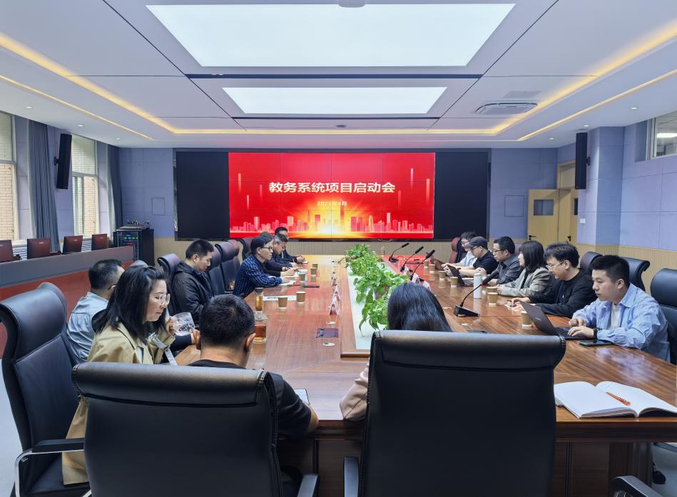 2025年4月9日上午,學校在鄠邑校區(qū)博覽樓A116室召開教務系統(tǒng)項目啟動會。教務處全體處科級干部、實驗室管理處、信息化建設與管理處、高教研究與評估督導中心相關負責人,超星集團陜西分公司總經(jīng)理高華、副總經(jīng)理曹瑾、項目總監(jiān)何中楷及相關工作人員參加了會議。會議由教務處處長時保宏主持。