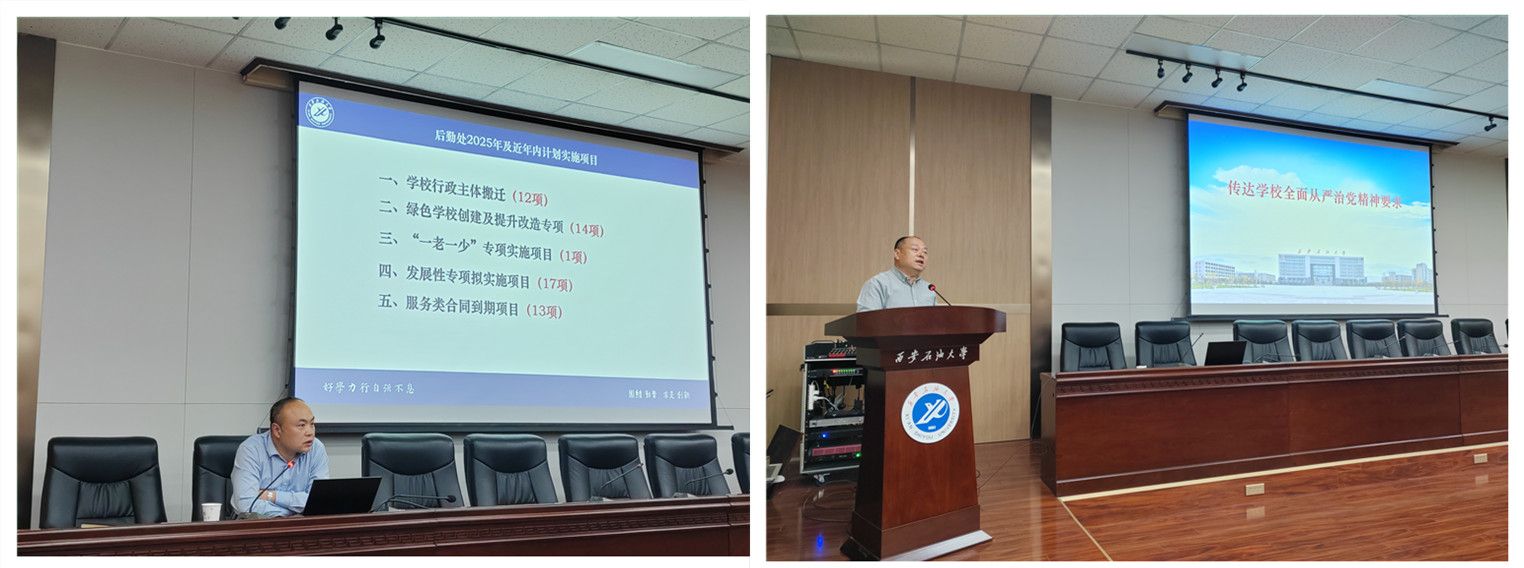 張驍勇副校長就如何圍繞學校中心工作高質量開展后勤服務保障提出三點要求:一是要統(tǒng)一認識、提高政治站位,要深刻把握后勤工作的服務屬性,以“師生至上”為宗旨,全面提升服務意識,為打造“幸福西石大”貢獻后勤力量。二是要協(xié)同攻堅、提升服務效能,堅持全局“一盤棋”思想,強化部門聯(lián)動,突破溝通障礙,以“馬上就辦、辦就辦好”的作風,跑出后勤保障“加速度”。三是要嚴明紀律、鑄牢廉潔防線,完善制度規(guī)范,構建“受理-處置-反饋”閉環(huán)機制,嚴守紀律紅線,以風清氣正的政治生態(tài)推動服務質量再上新臺階。