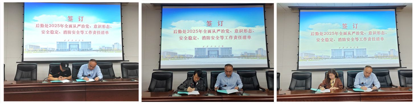 會上,后勤處領導班子逐一與所分管的各中心(辦)負責人簽訂了《后勤處2025年全面從嚴治黨、意識形態(tài)、安全穩(wěn)定、消防安全等工作責任清單》,要求緊密結合全面從嚴治黨工作、后勤管理集中整治工作,進行壓力逐級傳導,層層夯實責任,確保責任到人。