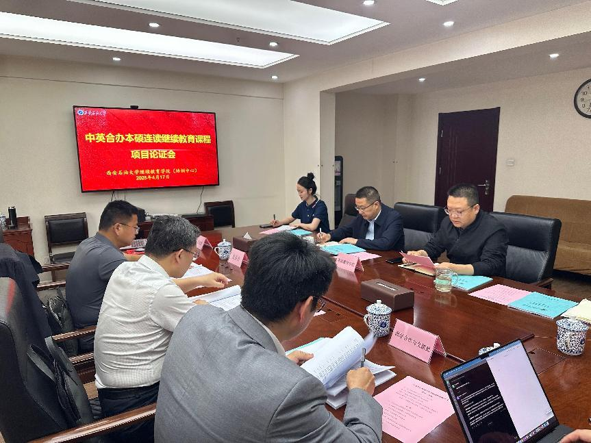 417午,繼續(xù)教育學(xué)院明德校區(qū)培訓(xùn)北樓會(huì)議室召開(kāi)中英合辦本碩連讀繼續(xù)教育課程項(xiàng)目論證會(huì)。學(xué)校教務(wù)處、研究生院、國(guó)際交流與合作處等部門(mén)負(fù)責(zé)人,項(xiàng)目合作單位三學(xué)教育科技(西安)有限公司負(fù)責(zé)人參加會(huì)議。