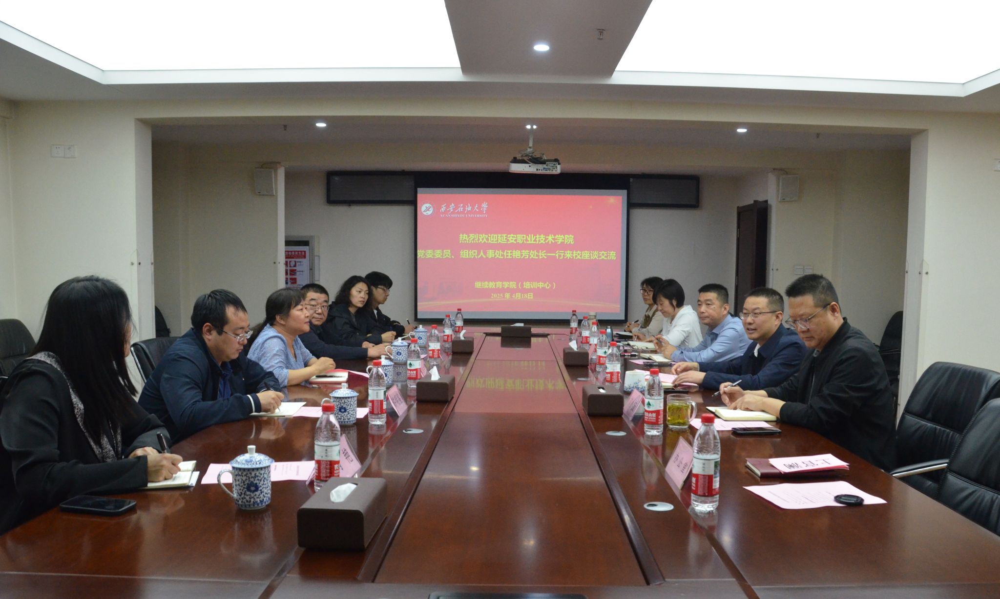 為共同推動繼續(xù)教育事業(yè)發(fā)展,加強校際間的合作與交流,4月18日下午,延安職業(yè)技術學院黨委委員、組織人事處處長(統戰(zhàn)部部長)任艷芳、繼續(xù)教育學院院長惠延東等一行6人來我校繼續(xù)教育學院(培訓中心)座談交流,就學歷教育、培訓教育、同等學力申碩等方面進行了深入的交流。