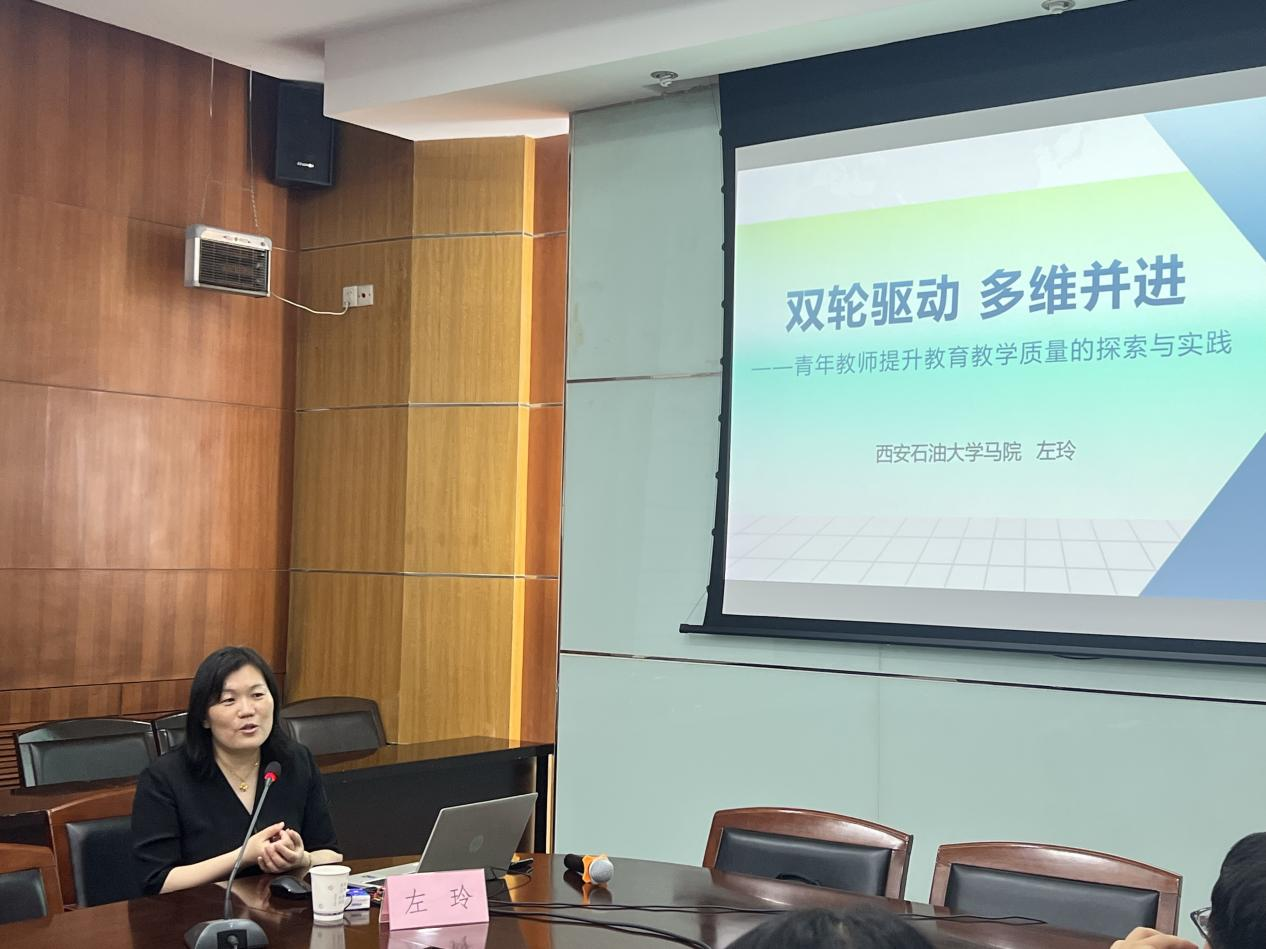馬克思主義學(xué)院左玲教授作題為“雙輪驅(qū)動 多維并進——青年教師提升教育教學(xué)質(zhì)量的探索與實踐”主題分享,她圍繞教育變革背景下青年教師的時代使命、提升教育教學(xué)質(zhì)量的“1+2+3”路徑模式、青年教師未來發(fā)展的破界進階三大問題,聚焦“1”個核心能力、“2”個驅(qū)動引擎和“3”個支撐體系,結(jié)合20余年的從教經(jīng)驗與實踐案例,分享了自己豐富的課堂教學(xué)經(jīng)驗以及省級思政課教師“大練兵”活動參賽經(jīng)驗,探討青年教師如何從“破壁者”轉(zhuǎn)向“融合者”、邁向“引領(lǐng)者”的成長規(guī)劃與躍升策略,為與會教師提供了明晰的發(fā)展思路和有益的教學(xué)科研經(jīng)驗建議,助力青年教師在教學(xué)創(chuàng)新、科研轉(zhuǎn)化、社會服務(wù)中實現(xiàn)高質(zhì)量發(fā)展。