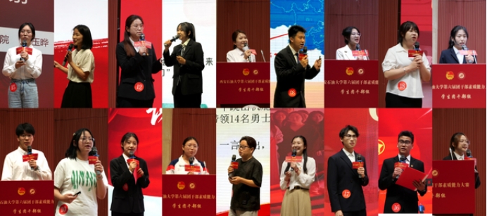 為充分展示青春風(fēng)采,激發(fā)青春活力,增強(qiáng)基層學(xué)生團(tuán)干部的業(yè)務(wù)能力和素養(yǎng),切實(shí)發(fā)揮以賽促學(xué)、以賽代練的作用,5月28日,由校團(tuán)委主辦,石油工程學(xué)院團(tuán)委承辦的我校第六屆團(tuán)干部素質(zhì)能力大賽(學(xué)生團(tuán)干部組)決賽暨青春風(fēng)采展示活動在鄠邑校區(qū)弘石學(xué)術(shù)報(bào)告廳舉辦。校團(tuán)委副書記王軍策,學(xué)生工作部學(xué)生管理科科長郭媛,校團(tuán)委組織部部長付強(qiáng)、宣傳部副部長李佩琦,石油工程學(xué)院學(xué)生工作辦公室副主任史陽擔(dān)任比賽評委。