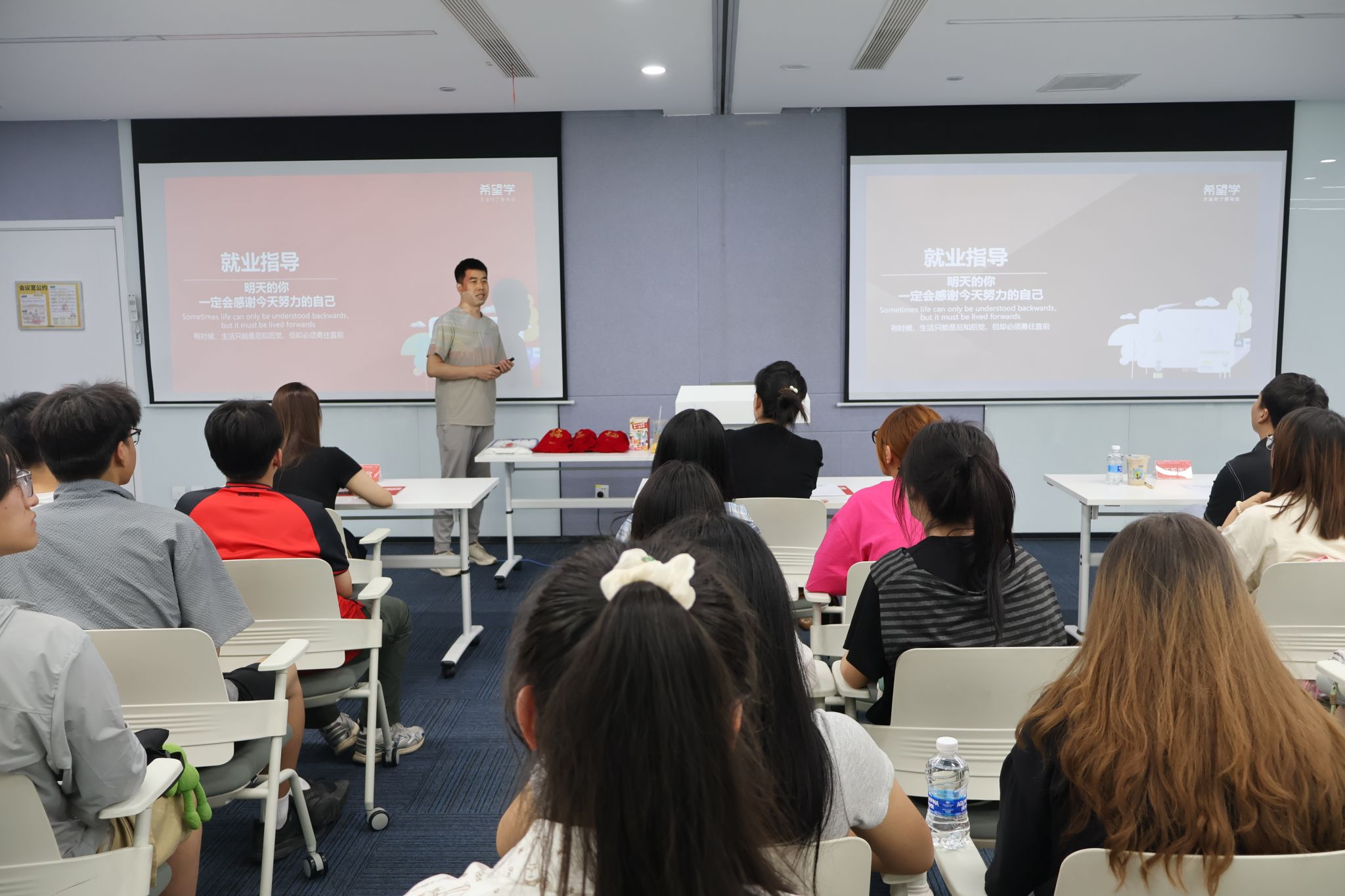 希望學人力資源負責人王鈺佳向?qū)W院師生介紹了機構(gòu)背景與發(fā)展歷程,通過云游博物館、吉木乃縣教育公益等項目案例,展示了企業(yè)教育理念與社會責任;并詳細說明了希望學“主講教師+班主任”雙師模式的崗位職責、福利待遇及兼職實習崗位的招聘要求。