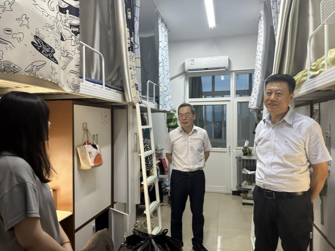 為切實做好2025屆畢業(yè)生畢業(yè)季相關(guān)工作,進一步了解我院畢業(yè)生的思想動態(tài)與生活狀況,傳遞學(xué)院關(guān)懷,6月9日,外國語學(xué)院黨委書記張建高、副院長陳武、學(xué)生工作辦公室副主任陳浩、輔導(dǎo)員王藝蓉深入2025屆畢業(yè)生宿舍,為即將踏上征程的畢業(yè)生送上溫馨的關(guān)懷與祝福。