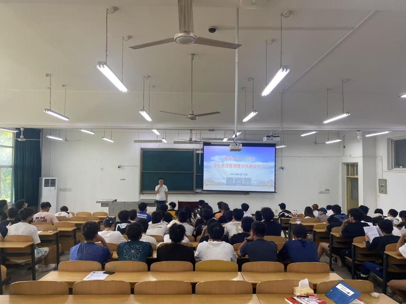 為進(jìn)一步加強(qiáng)學(xué)生教育管理和學(xué)風(fēng)建設(shè),引導(dǎo)學(xué)生樹(shù)立正確的學(xué)習(xí)態(tài)度和營(yíng)造良好的考風(fēng)考紀(jì)環(huán)境,6月12日下午,體育學(xué)院在博思樓B121教室召開(kāi)學(xué)生教育管理暨學(xué)風(fēng)建設(shè)大會(huì),學(xué)院黨總支書(shū)記茍毅飛、學(xué)生工作辦公室主任姜國(guó)平、輔導(dǎo)員張澤正及2022級(jí)、2023級(jí)、2024級(jí)本科生參加大會(huì)。