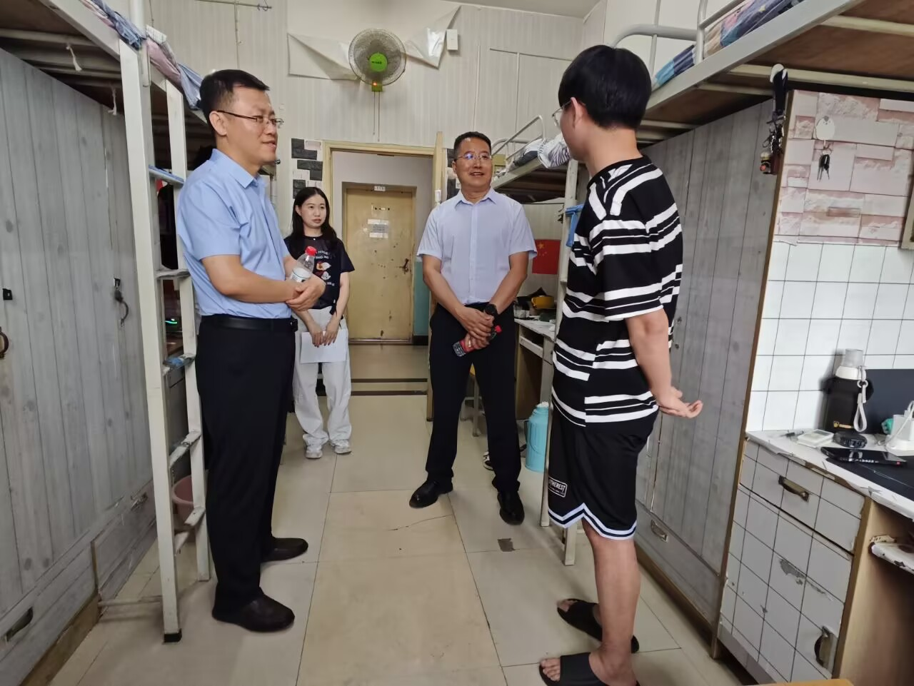 6月17日,理學(xué)院黨委書記席利哲,院長折延宏,副書記楊富民帶領(lǐng)學(xué)生工作辦公室副主任龐波,畢業(yè)班輔導(dǎo)員林曄一起深入畢業(yè)生宿舍,開展走訪慰問活動,為即將踏上新征程的畢業(yè)生們送去學(xué)院的關(guān)懷與祝福。