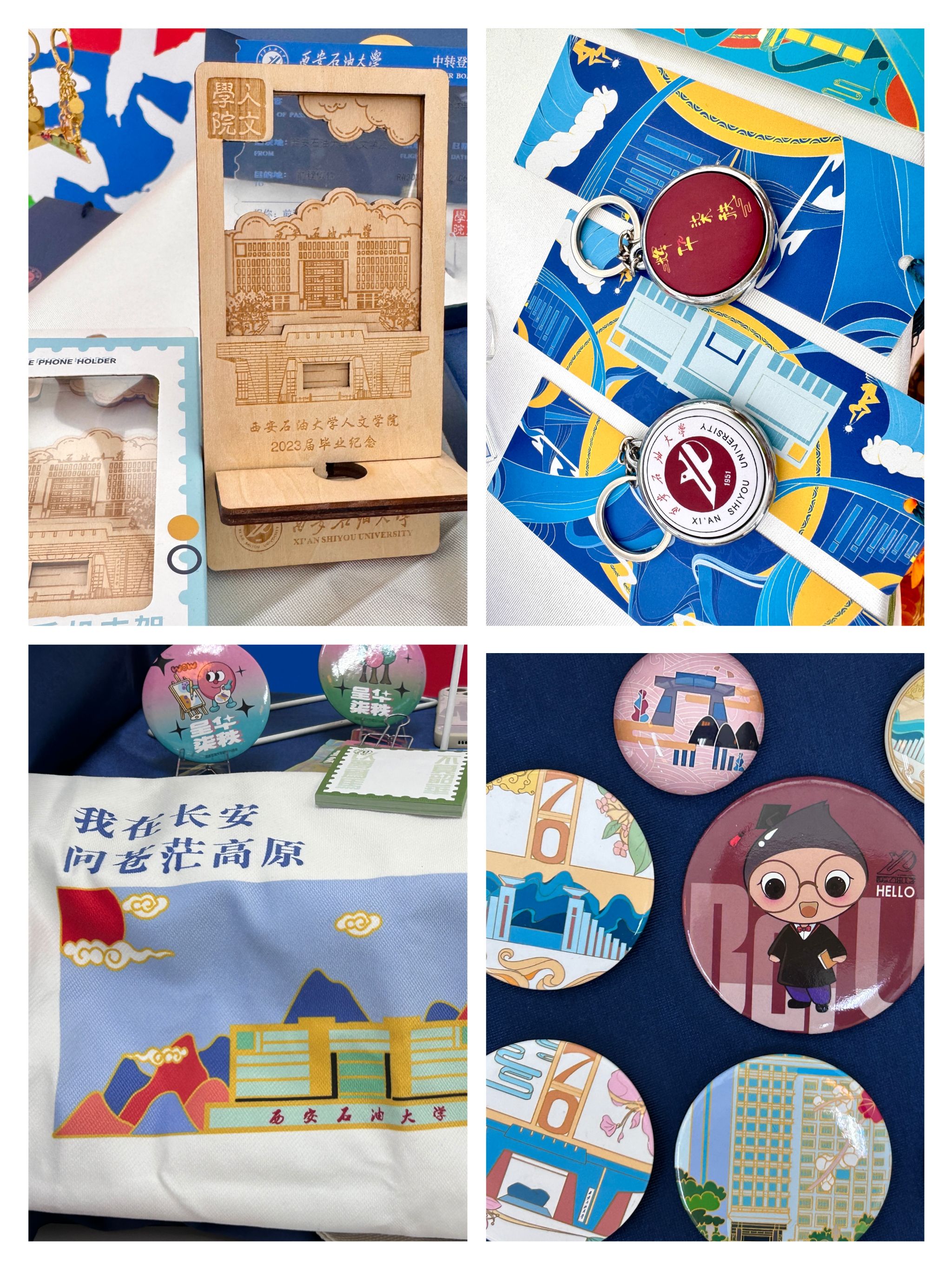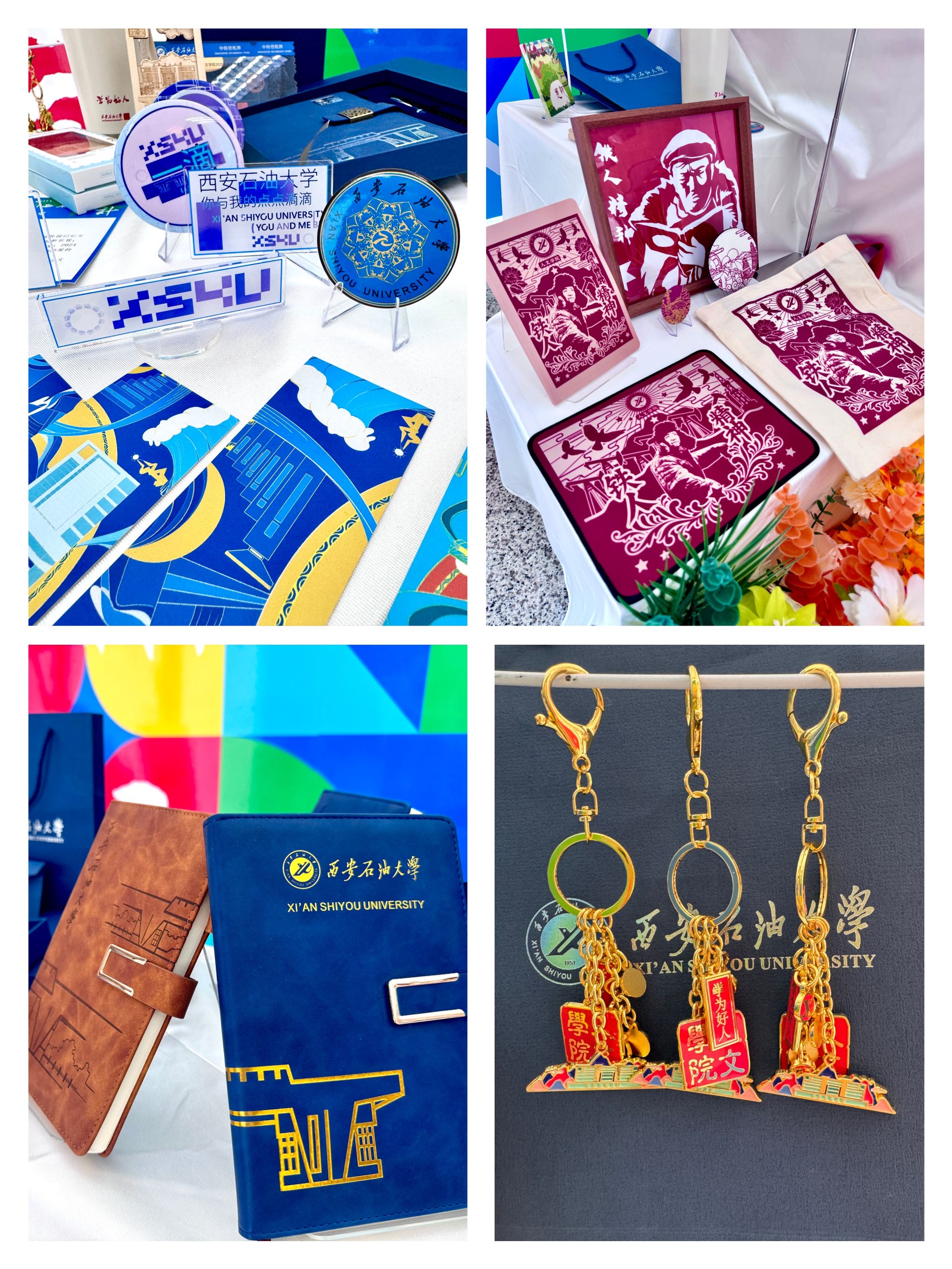 無人文創(chuàng)集市匯集了人文學院學生精心設計的各類主題文創(chuàng)作品,涵蓋學習用品、生活好物、藝術(shù)裝飾等多個品類。展臺上,印有校訓、校園風景的定制筆記本、書簽、明信片等文具類產(chǎn)品兼具實用性與紀念意義;以學校標志性建筑為靈感的徽章、鑰匙扣、帆布包等文創(chuàng)周邊,展現(xiàn)了學子對校園的深厚情感;還有學生手繪的原創(chuàng)IP形象衍生品等藝術(shù)創(chuàng)作,將西石大的文化底蘊與青春創(chuàng)意完美融合。值得一提的是,許多作品融入了“鐵人精神”“石油特色”等學校特有元素,體現(xiàn)了學生們對學校歷史與精神的深刻理解,也傳遞出新時代青年傳承校風、為校爭光的決心。