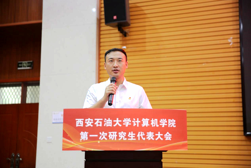 校研究生會(huì)執(zhí)行主席張振陸致辭,他首先對(duì)學(xué)院研究生工作給予了高度肯定,并表示學(xué)院可以在和校研究生會(huì)的交流中,聚焦學(xué)術(shù)創(chuàng)新、權(quán)益維護(hù)和計(jì)算機(jī)學(xué)科特色方面,打造有溫度、有活力的研究生組織。